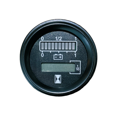 它主要由一塊液晶小時(shí)計(jì)儀表及十個(gè)電量狀態(tài)指示LED組成。液晶小時(shí)計(jì)儀表主要積累顯示車輛工作小時(shí),十個(gè)狀態(tài)LED指示當(dāng)前蓄電池的剩余電量。